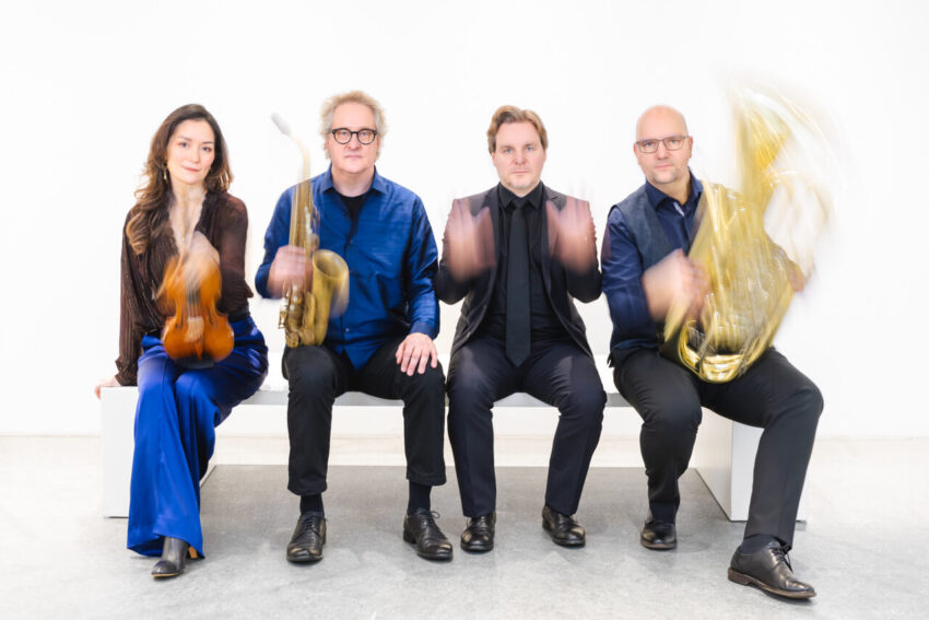 Die vielsaitige Expertise von Naomi Binder, einer österreichischen Geigerin mit japanischen Wurzeln, trifft auf Roger Hanschel mit seinen virtuosen Saxophonklängen und reichhaltigen Kompositionen. Gero Körners stilistische Vielfältigkeit am Klavier und seine feinsinnige Klangkultur zwischen Klassik und Jazz ist das Brückenglied zu den kammermusikalischen Wurzeln des aus Ungarn stammenden Tubisten Attila Benkö, der mit seinem Instrument neue Wege im Konzertdesign erschließt.